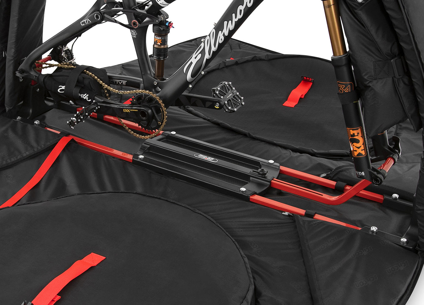 With an internal bike stand and adjustable wheelbase of up to 1250mm, the bag promises a stable connection for your mountain bike and maximum protection at the dropouts and drivetrain.