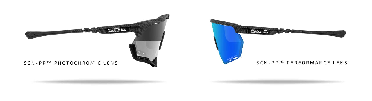 The new state-of-the-art Aeroshade and Aerowing frame color-way collection is assembled with a "cross-woven” carbon fiber look and is available in five different lens colors, including the Scicon Sports SCN-PP™ Photochromic Lens option. When you think fast, you think Scicon.